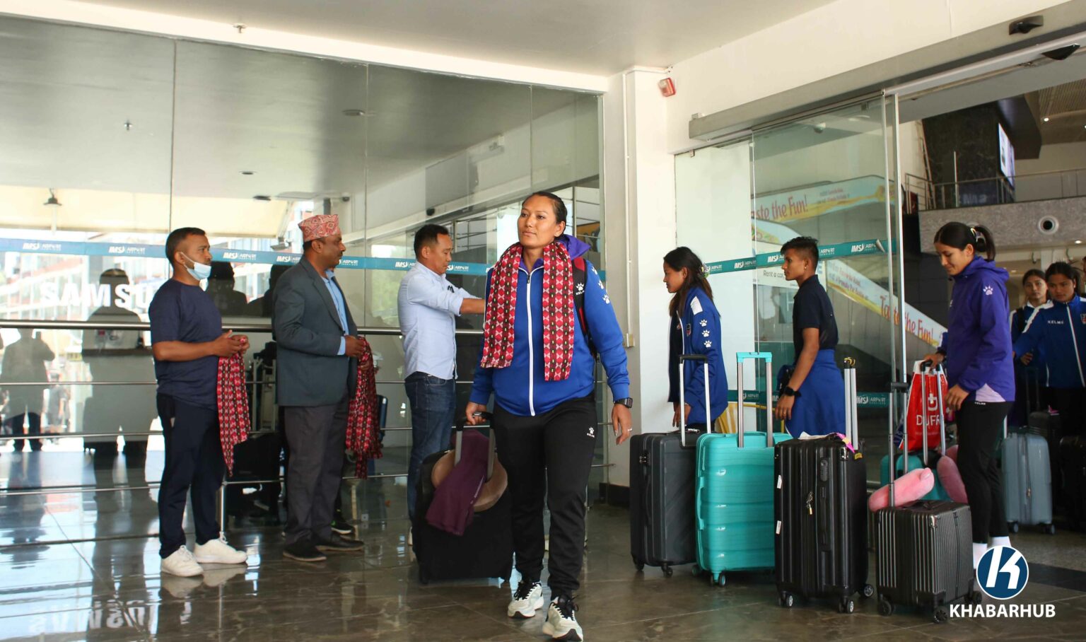 KATHMANDU: The Nepali national women’s football team returned home on Monday morning after competing in the Asian Cup Qualifiers.