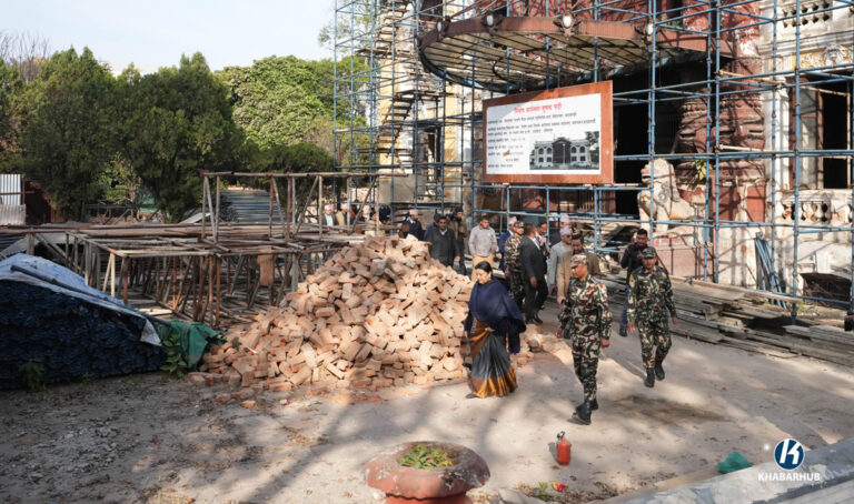 KATHMANDU: Former President Bidya Devi Bhandari inspected the fire-damaged parts of Singha Durbar that were affected during the Gen-Z movement on September 9.