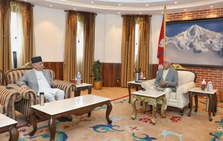 Prime Minister Oli visited Sheetal Niwas to meet President Paudel, where they discussed contemporary issues, according to the Prime Minister’s Secretariat.