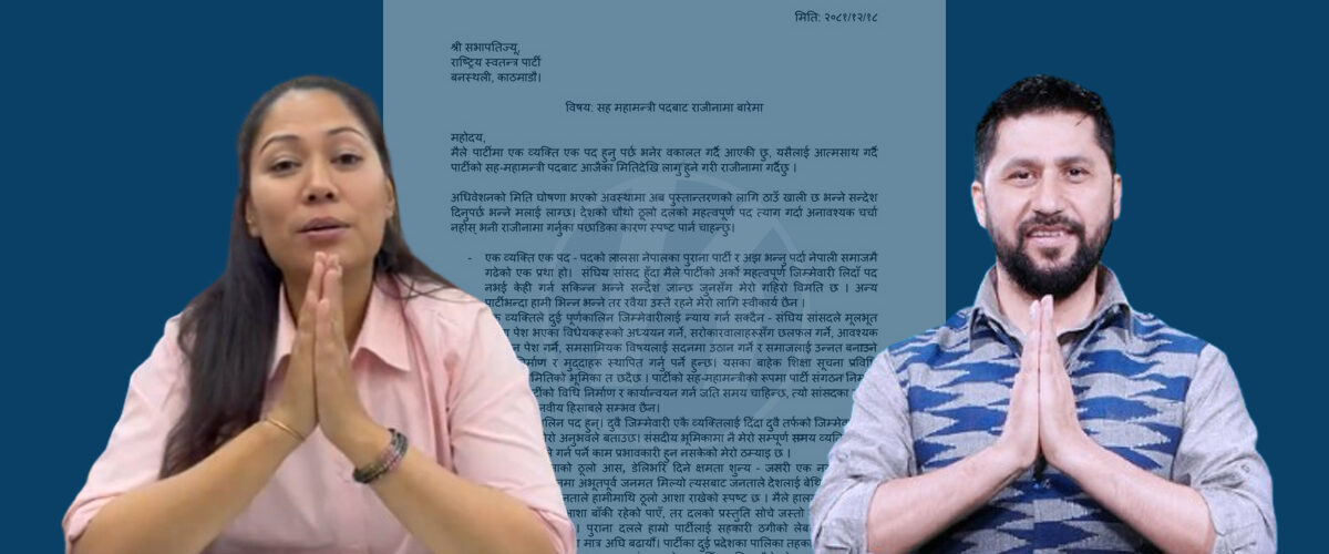 Sumana had submitted her resignation to Lamichhane on Chaitra 17, citing her unwillingness to continue in the leadership role. However, the letter was only discussed at the Central Committee meeting on Baisakh 4.
