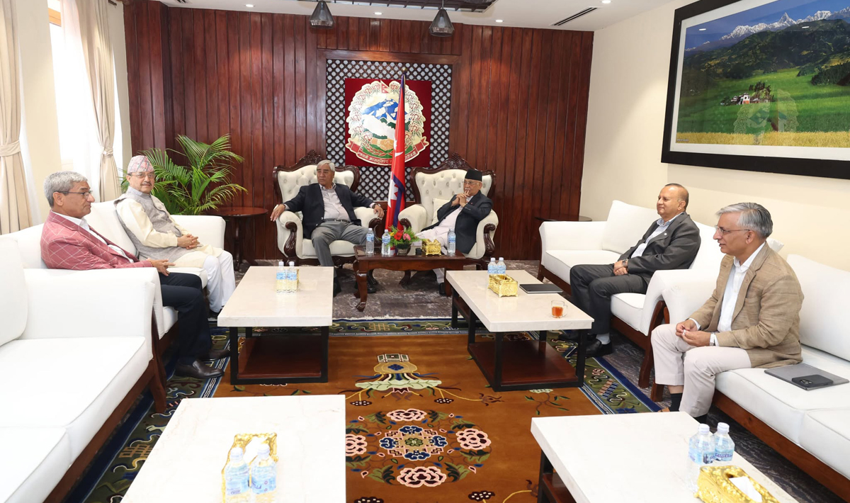 KATHMANDU: Prime Minister KP Sharma Oli held a high-level meeting with top leaders from the major ruling coalition partners today at the Prime Minister’s residence in Baluwatar.