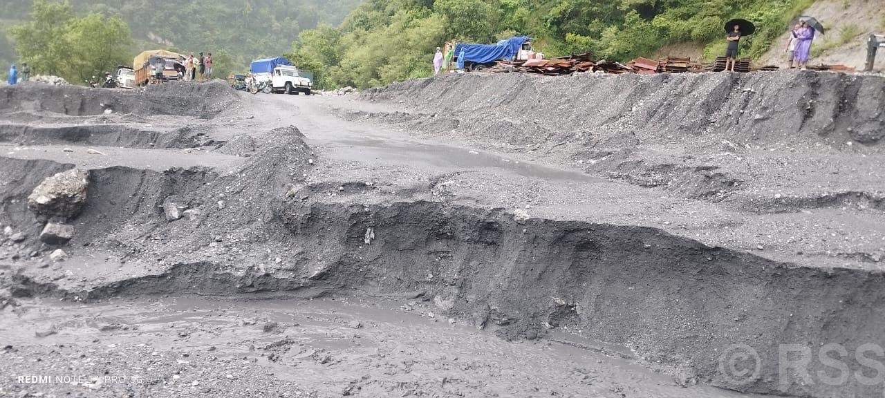 Similarly, the Ridi–Khanjyang road has also been blocked due to a dry landslide. A landslide in Sankhar, Rurukshetra Rural Municipality-1, has completely obstructed the road section.