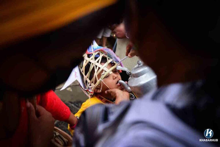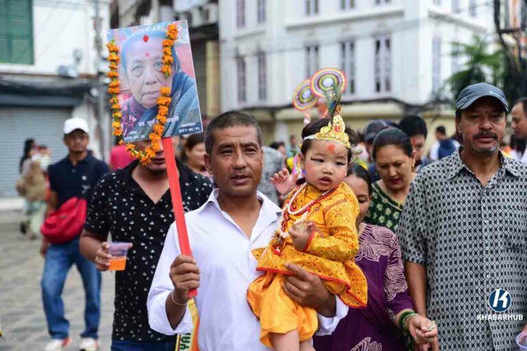 The festival is believed to have originated during the reign of King Pratap Malla. After losing his son, the king instructed his queen to organize a Gaijatra procession throughout the city to symbolize the shared grief of families who have lost loved ones.
