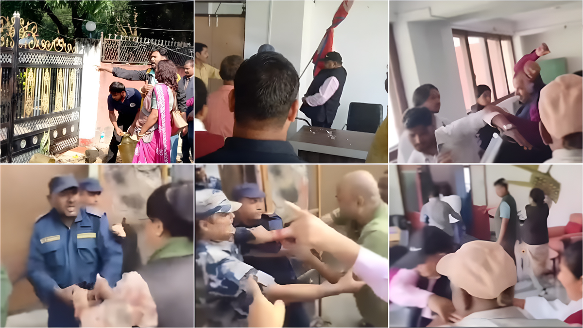 Leaders and activists from seven opposition parties, including Nepali Congress, CPN (Maoist), CPN (Unified Socialist), LSP, Janamat Party, JSP, and Janata Unmukta Party, stormed the office, vandalizing furniture, flowerpots, and tables. Even the national flag was reportedly thrown in anger.