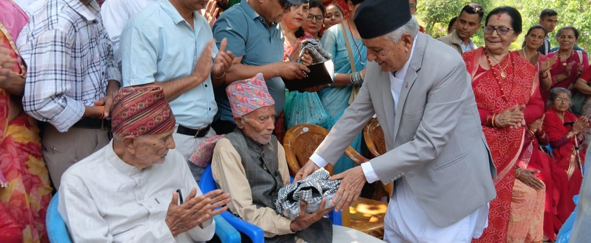 DAMAULI: President Ramchandra Paudel today honoured nine senior citizens at Risti, Vyas Municipality-8, in Tanahu.