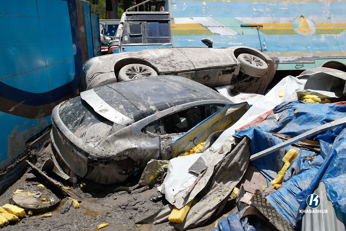 RASUWA: Several vehicles, including newly imported electric vehicles (EVs), were swept away by a massive flood in the Lhende River at the Nepal-China border in Rasuwa district on July 8.