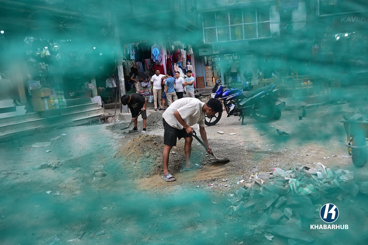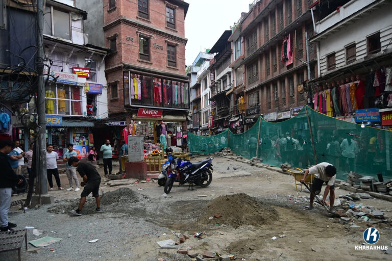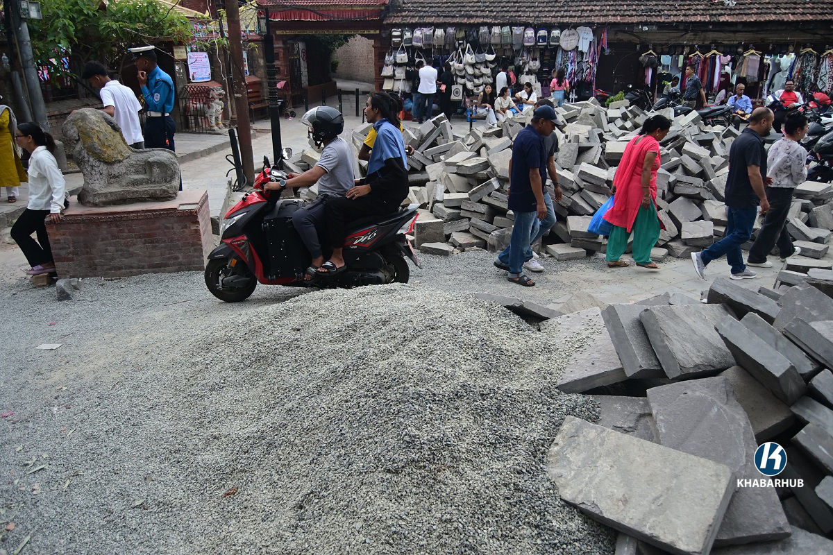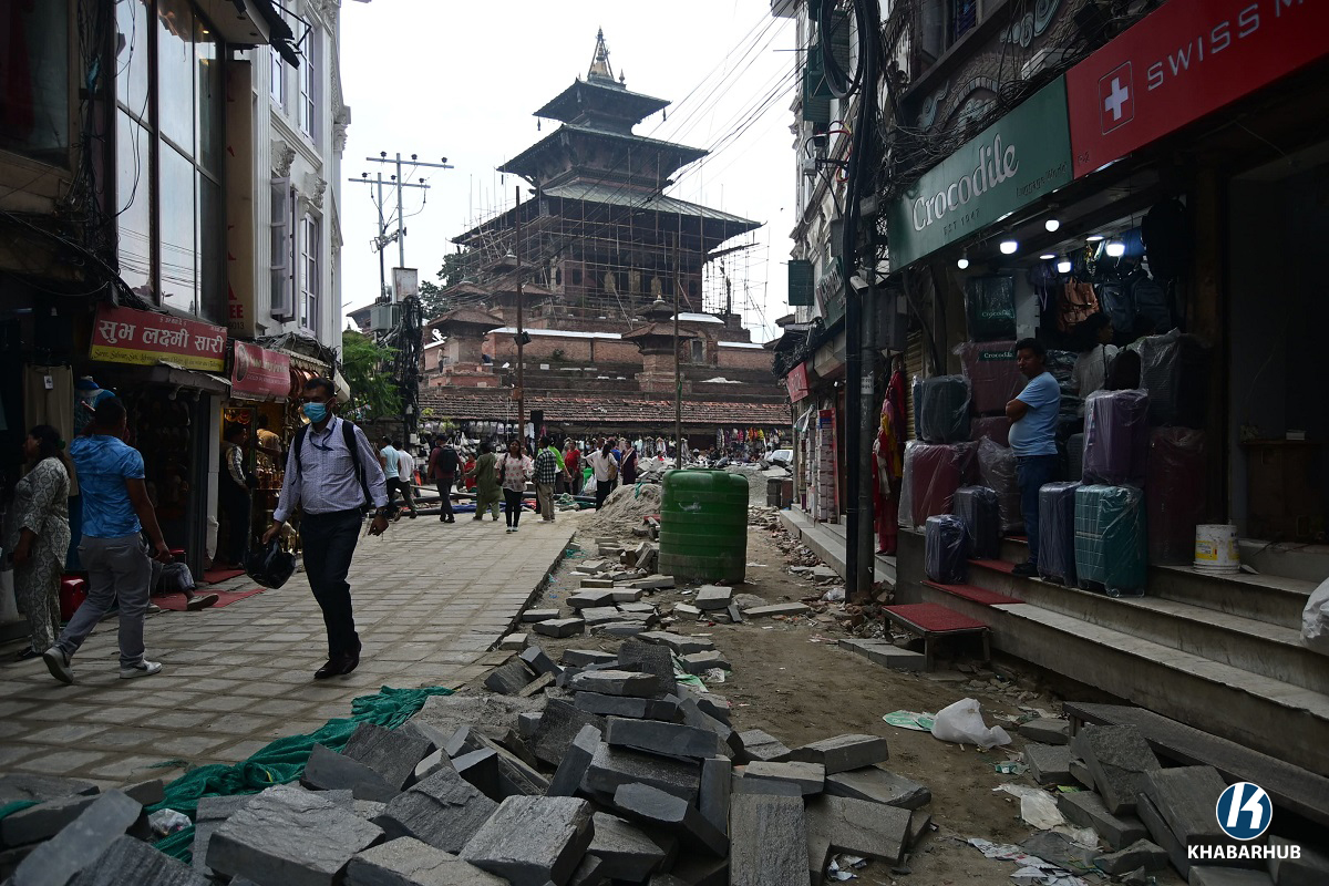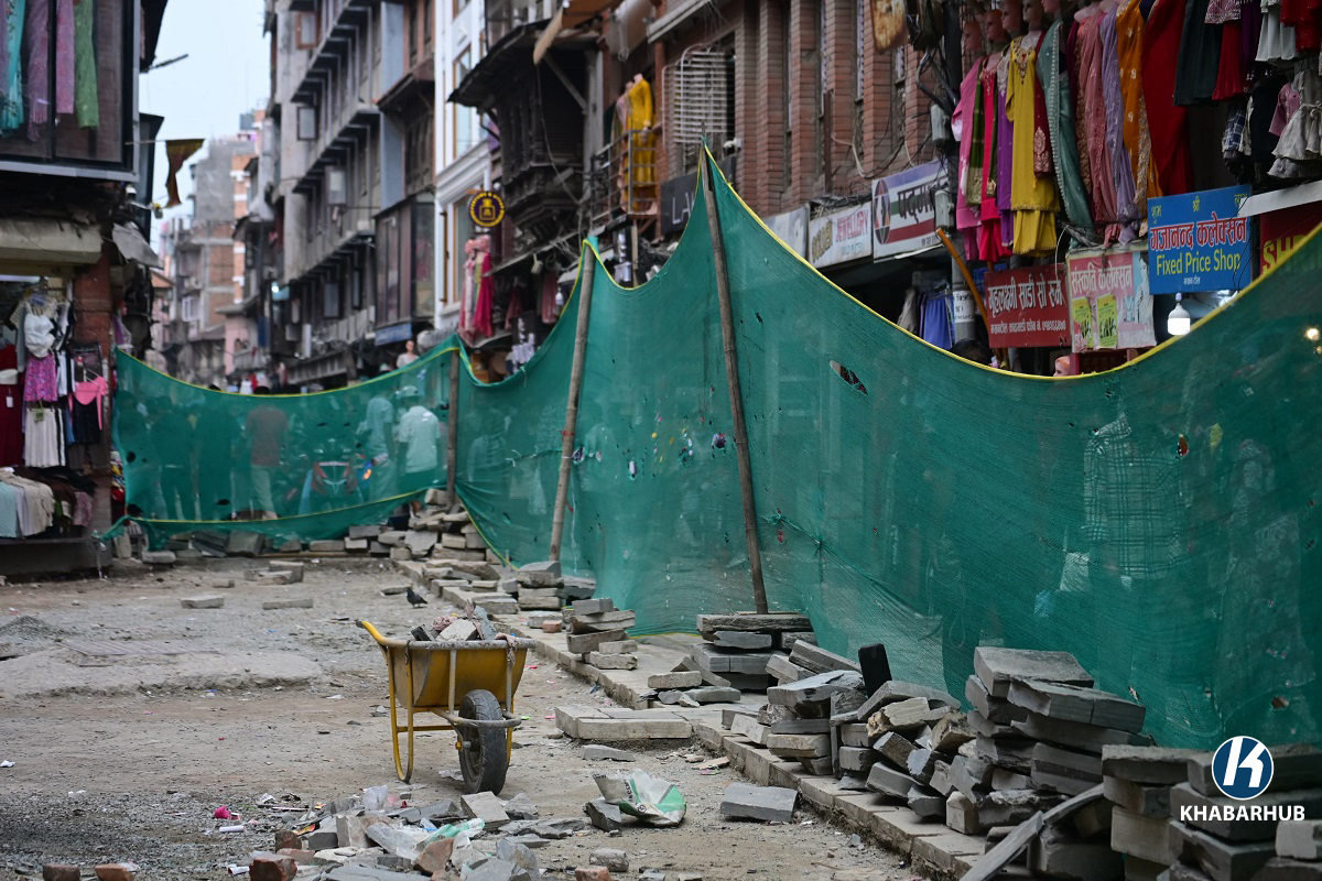 KATHMANDU: The long-delayed stone-paving work along the Makhan to Indrachowk road section has finally resumed, nearly two months after stones were laid out in preparation.