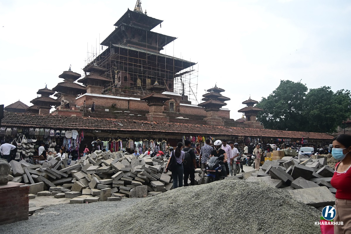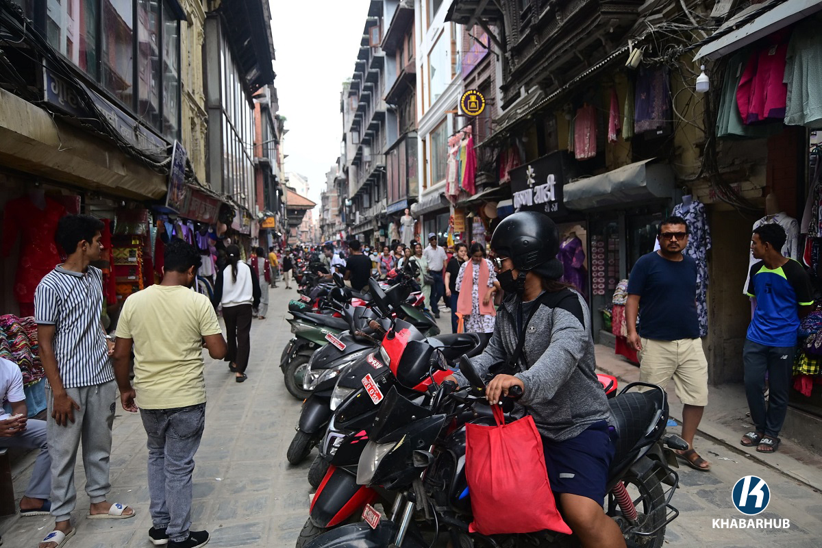 Meanwhile, the road from Indrachowk toward Makhan is being used as a parking space, further adding to the congestion. The area in front of the historic Taleju Temple is also in a similarly unmanaged and chaotic state.