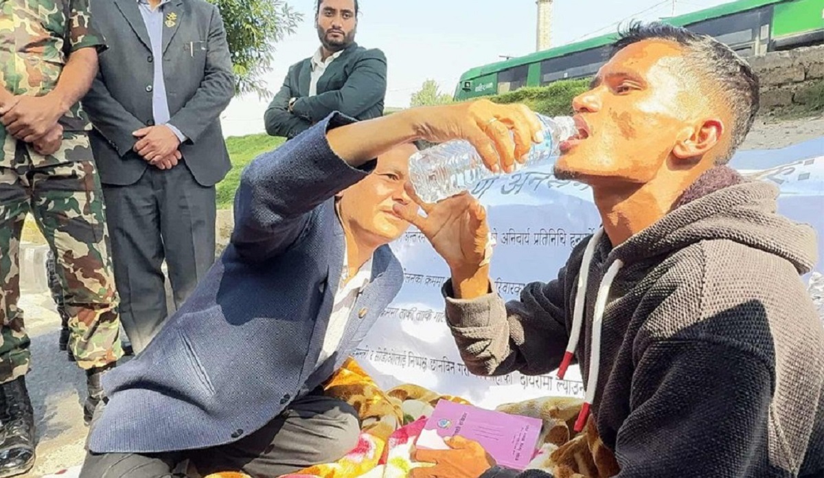 Minister Aryal personally visited Maitighar Mandala and offered Budha a glass of water to end his strike, according to Kathmandu District Police spokesperson SP Pawan Kumar Bhattarai.