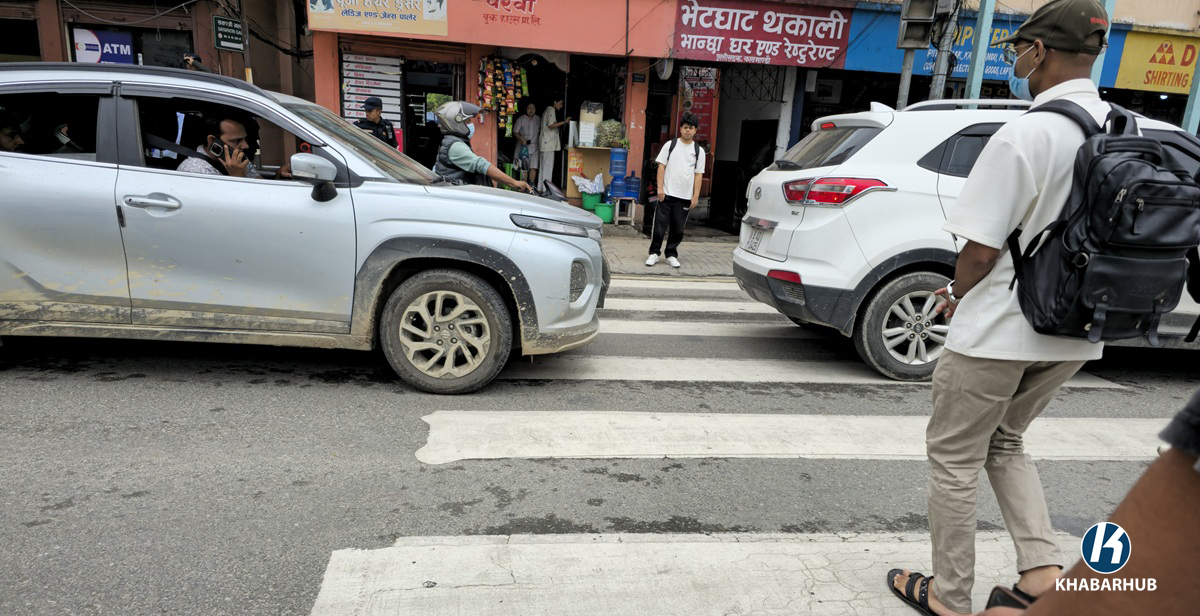 According to Section 132 of the Vehicle and Transport Management Act, 2049 (Amended 2075), it is clearly stated that vehicles must stop at zebra crossings when people are crossing or when traffic lights indicate a stop at an intersection. However, observations on Kathmandu’s roads suggest that zebra crossings are rarely clear, and it’s uncommon to see vehicles stopping to allow pedestrians to cross safely.