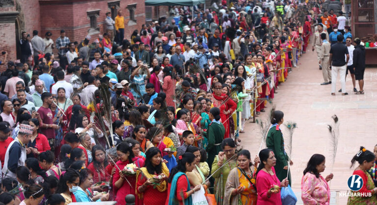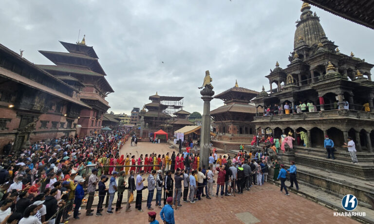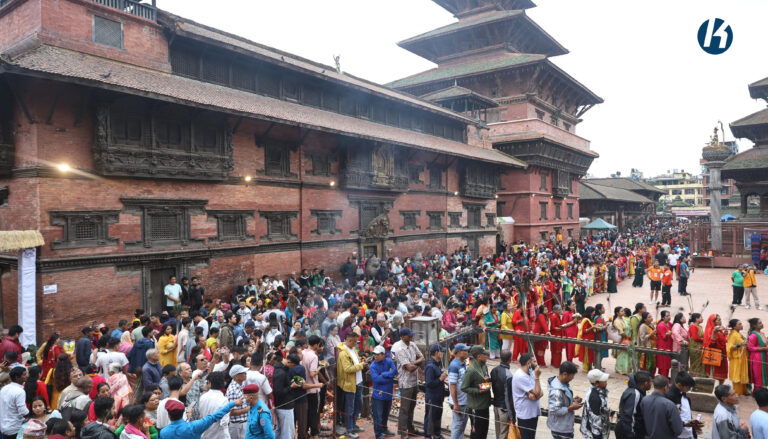KATHMANDU: Thousands of devotees have gathered at the historic Krishna Mandir in Mangalbazaar, Patan, today to celebrate Krishna Janmashtami, the festival marking the birth of Lord Krishna.