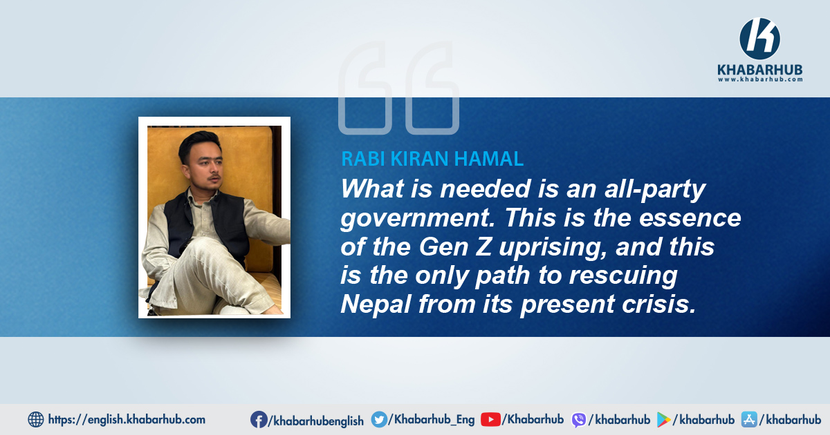 The current government cannot lead the country out of this crisis. What Nepal needs today is a government capable of carrying the weight of history—one that internalizes the spirit of the popular uprising and institutionalizes it through constitutional transformation. What is needed is an all-party government. This is the essence of the Gen Z uprising, and this is the only path to rescuing Nepal from its present crisis.