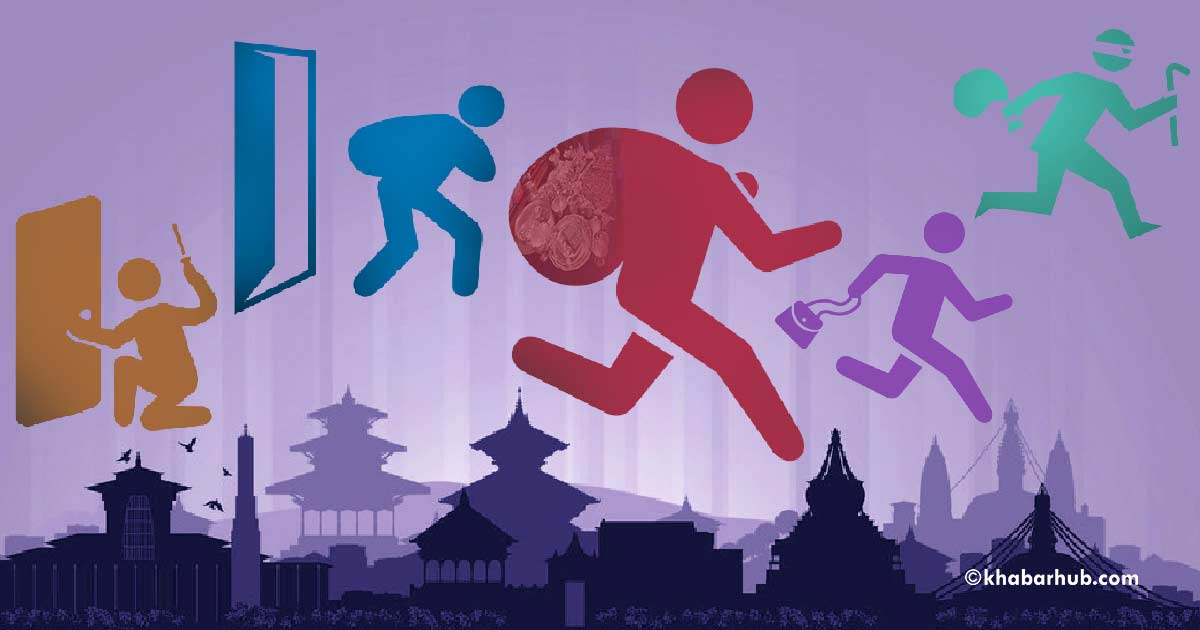 According to the Central Police News Room, theft incidents were reported on Monday from different areas of Tarkeshwor Municipality, Kathmandu Metropolitan City, and Mahalaxmi Municipality in Lalitpur. The stolen property includes gold and silver jewelry, cash, and electronic items.