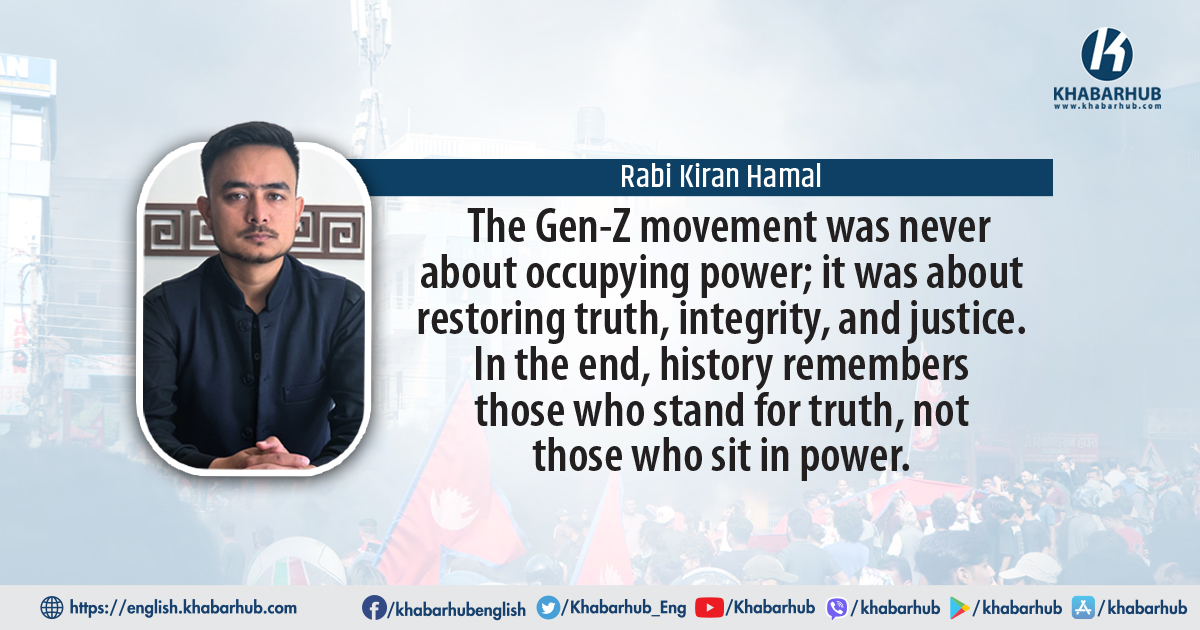 The responsibility once again lies on the shoulders of Nepal’s youth to preserve the true meaning of the revolution and protect the value of sacrifice. The Gen-Z movement was never about occupying power; it was about restoring truth, integrity, and justice. In the end, history remembers those who stand for truth, not those who sit in power.