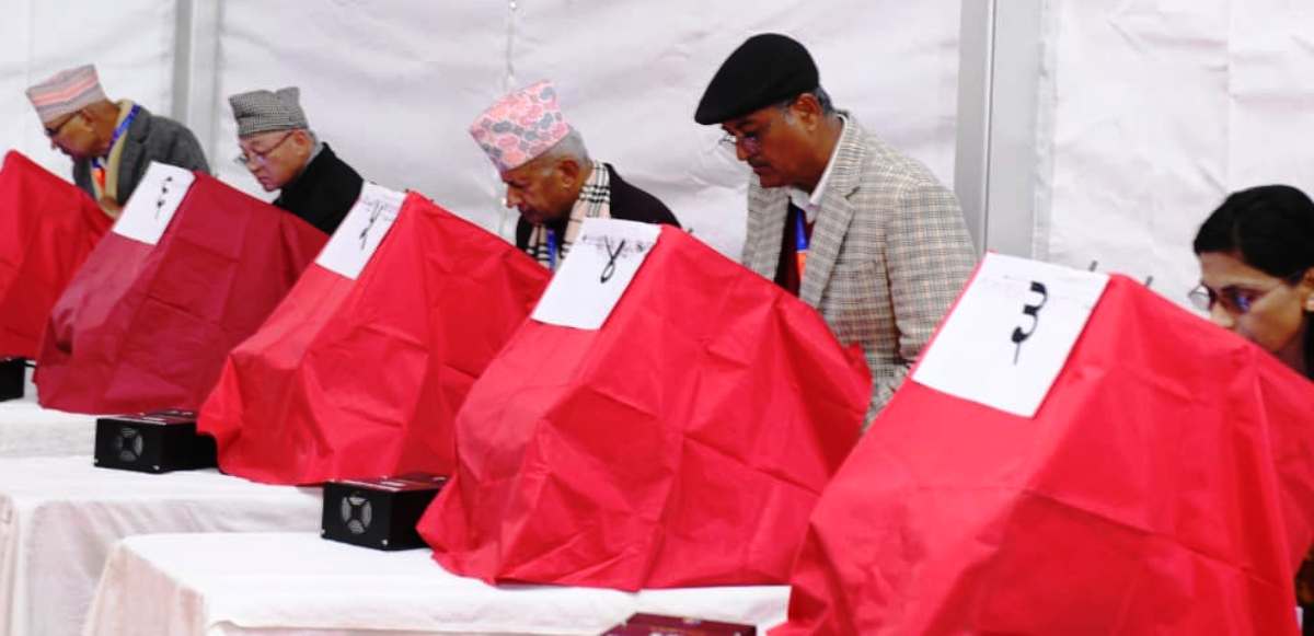 The contest for the party’s top post has drawn particular attention, with incumbent Chair KP Sharma Oli and senior leader Ishwar Pokharel competing for the position. According to Central Election Commission member Sanu Raja Pokharel, both Oli and Pokharel took around 55 minutes each to cast their votes.
