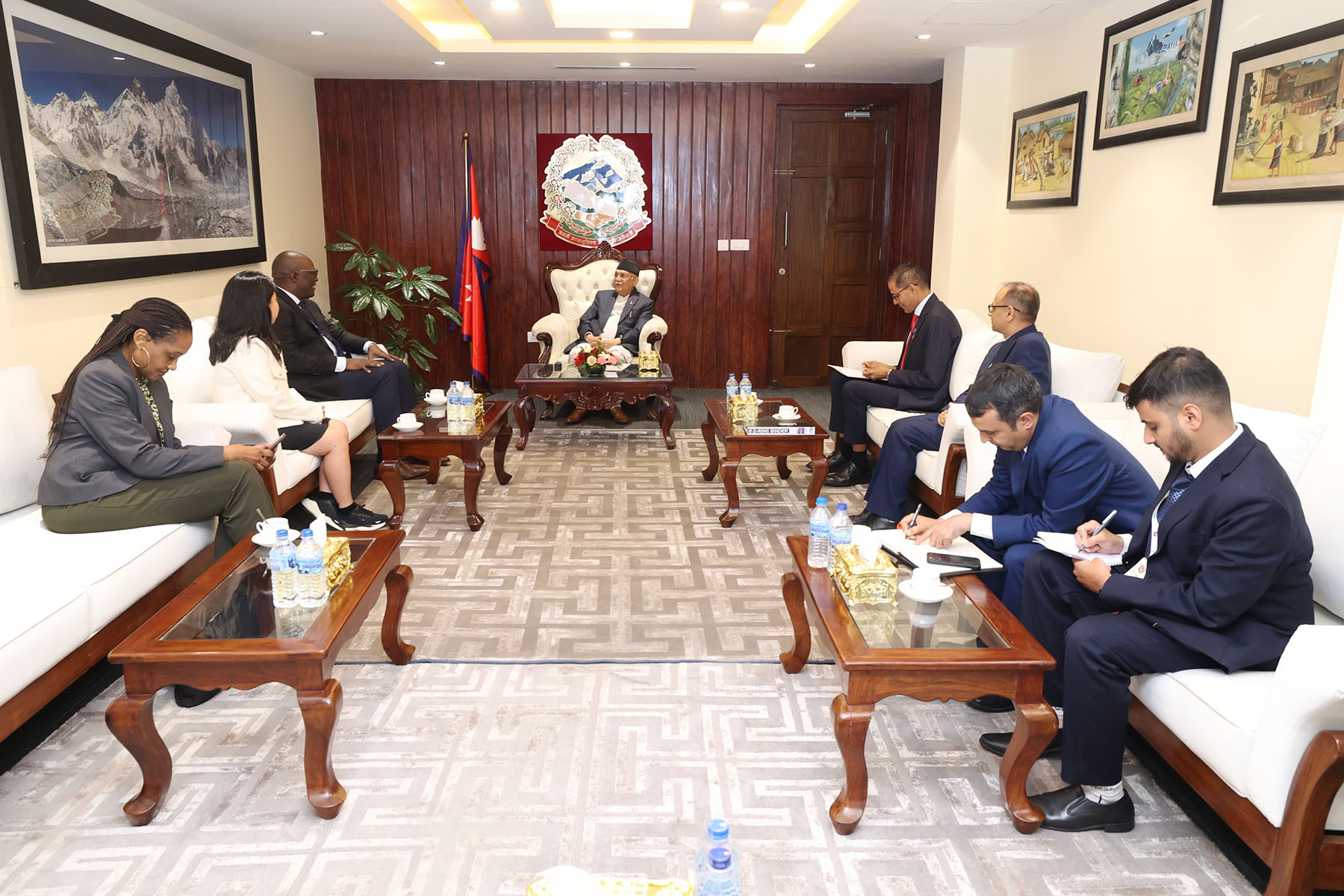 KATHMANDU: Visiting Executive Director of the United Nations Fund for Responding to Loss and Damage  Ibrahima Cheikh Diong  today  paid a courtesy call on Prime Minster KP Sharma Oli at latter’s official residence in Baluwatar.