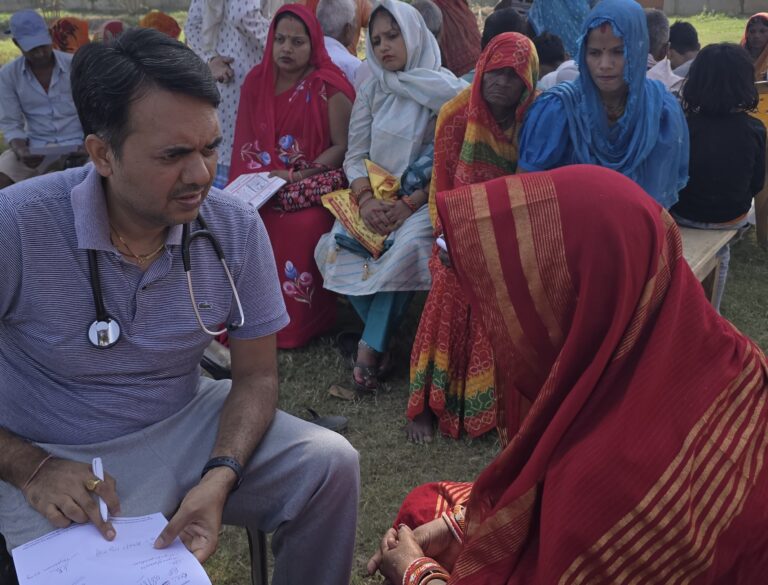 Dr. Om Murti Anil (L) at a health camp.