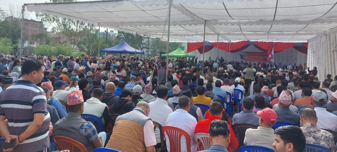 The event was held on an open stage in the party premises as the UML office building was set on fire during the Gen-Z protests on September 8 and 9.