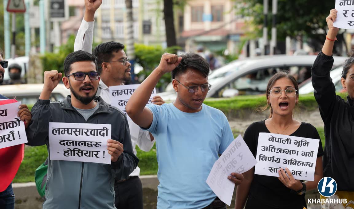 The protest erupted following reports that India and China have reached a bilateral agreement to conduct trade through the Lipulekh Pass.