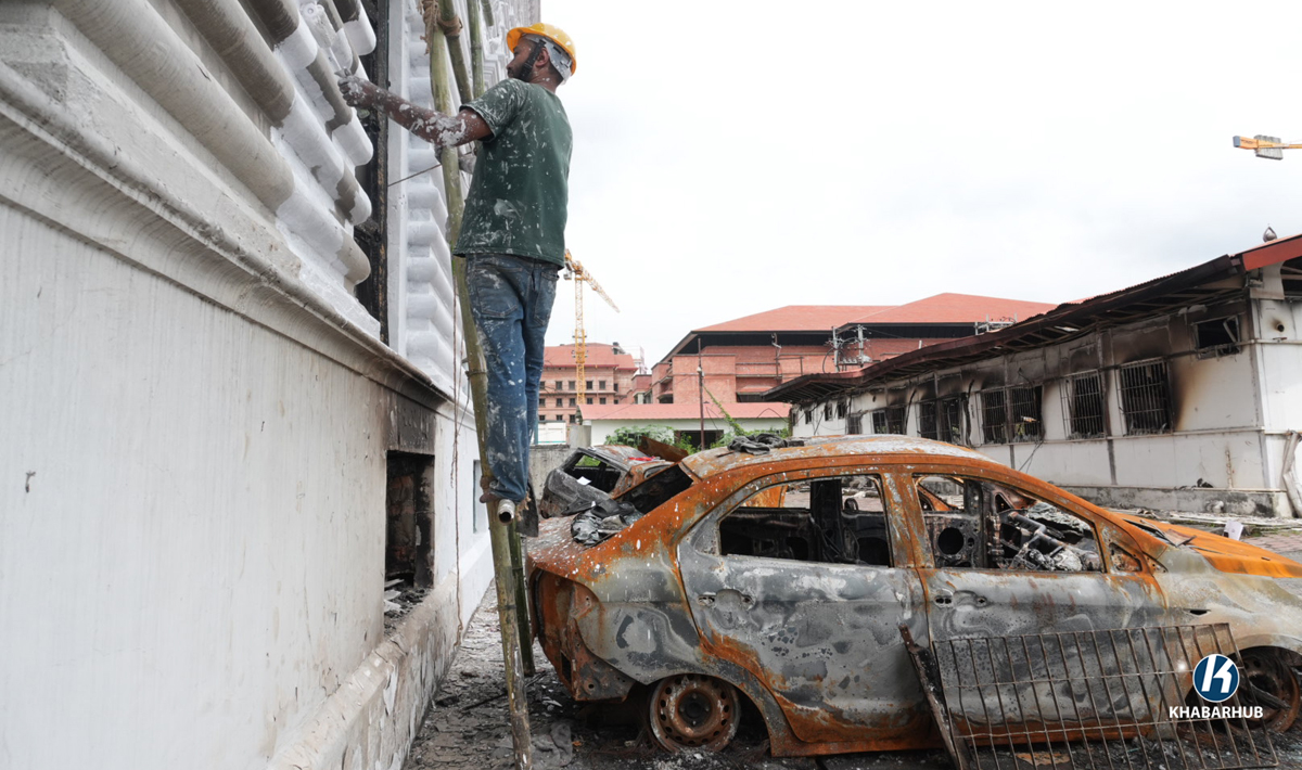 Following the September 9 arson attacks, repair and repainting works are being carried out so that the affected ministries can resume operations.
