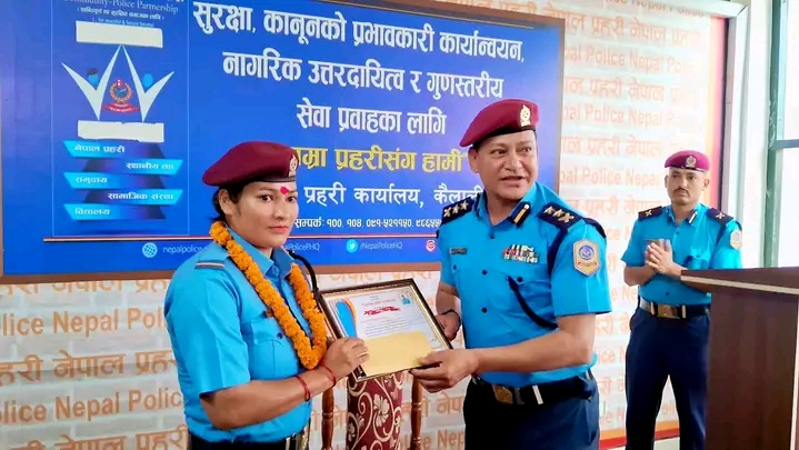 Chandrika Deuba, a police constable stationed at Khairana Police Post, was awarded with a letter of appreciation and recognition in official records by the District Police Office, Kailali, on Wednesday.