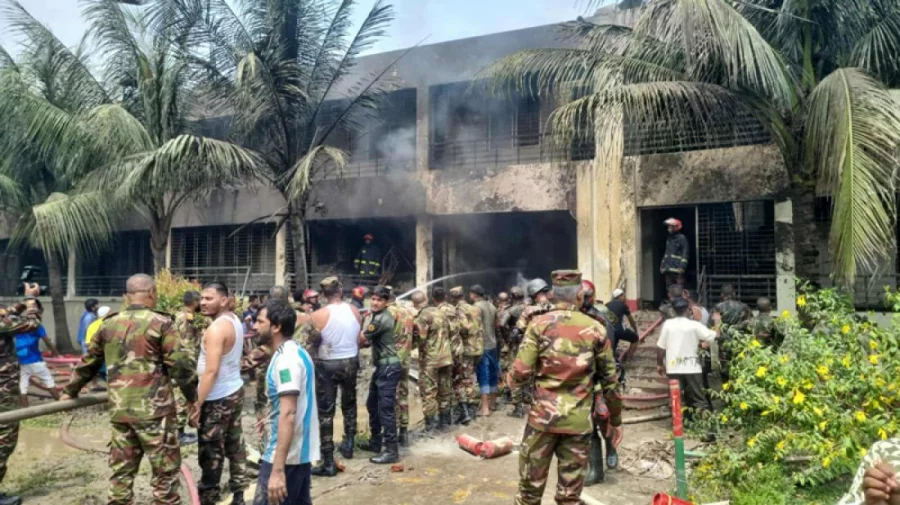 The F-7 fighter aircraft crashed into the premises of Milestone School and College in Uttara at 1:18 PM local time during a training flight, according to Bangladeshi media reports. The impact sparked a fire and caused panic among students and staff, many of whom were injured while trying to flee.