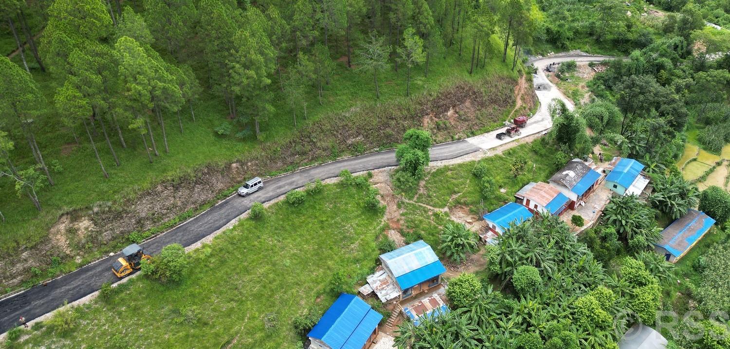 Beni Municipality technician Milan KC stated that 426 meters of premix blacktop, 130 meters of slopes, and 190 meters of concrete drains were built in the Ekpate and Abechaur areas as part of a project awarded a contract worth Rs. 6.267 million.