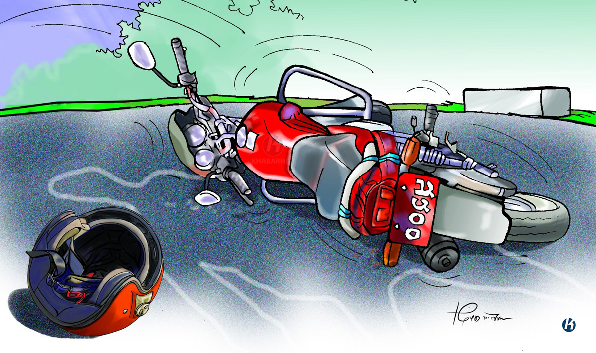 The motorcycle driver, 42-year-old Hira Bahadur Pariyar of Gaidachowk, Kawasoti Municipality–16, died during treatment later that night. The two pillion riders—32-year-old Sunita Joharja of Kawasoti Municipality–3 and 24-year-old Mina Magar of Kawasoti Municipality–14—are undergoing treatment at Madhyabindu Provincial Hospital, Danda.
