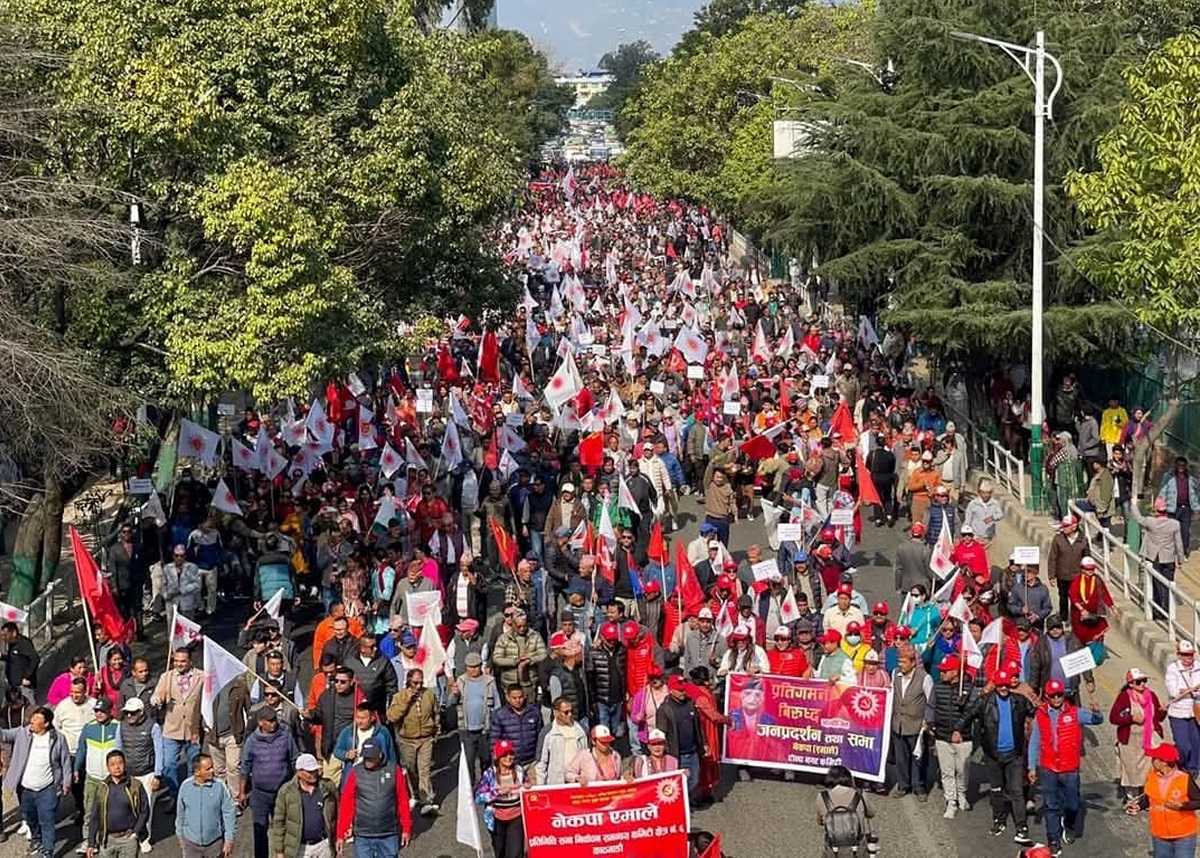 KATHMANDU: The CPN-UML staged a major demonstration and rally in the capital today, causing significant traffic pressure in central Kathmandu.