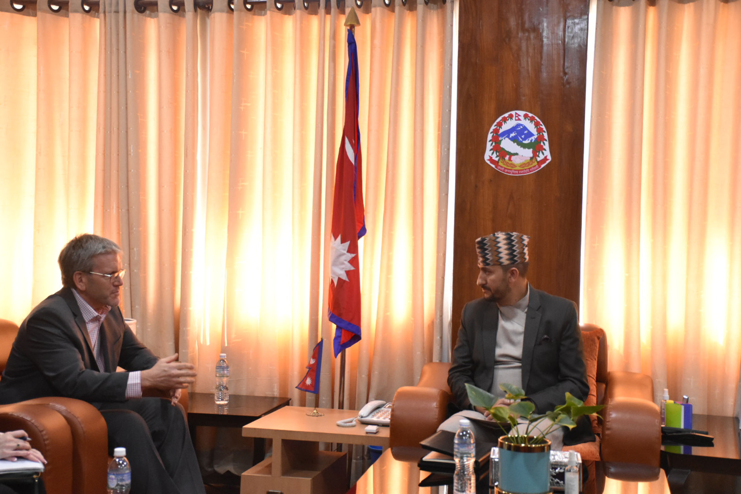 KATHMANDU: Ambassador of the United States (US) Dean R Thompson has paid a courtesy call on Minister for Communications and Information Technology Jagadish Kharel.