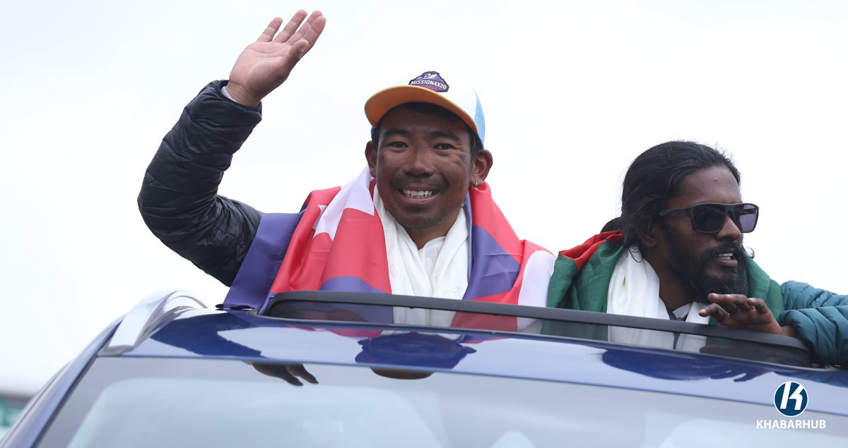 Upon his return, Sherpa received a grand welcome at Tribhuvan International Airport in Kathmandu.