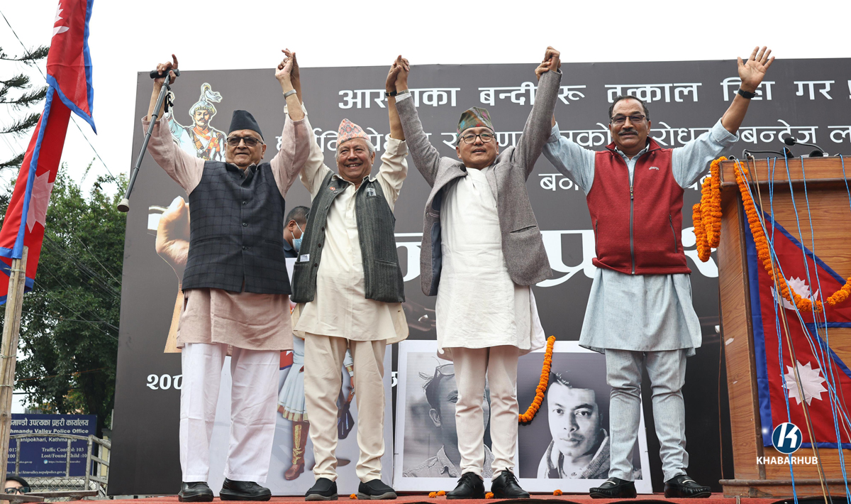 Keshar Bahadur Bista and Nawaraj Subedi, coordinator of the royalist movement, also joined them in solidarity.