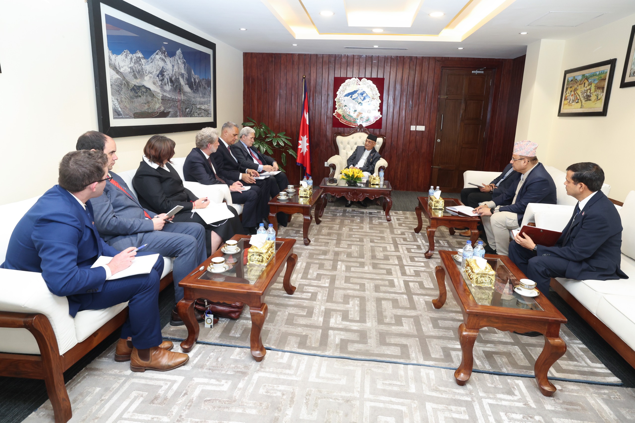Prime Minister Oli informed Deputy PM Peters that his government prioritizes national aspirations of a “Prosperous Nepal, Happy Nepali,” with a focus on stability, development, good governance, social justice, and transformation.