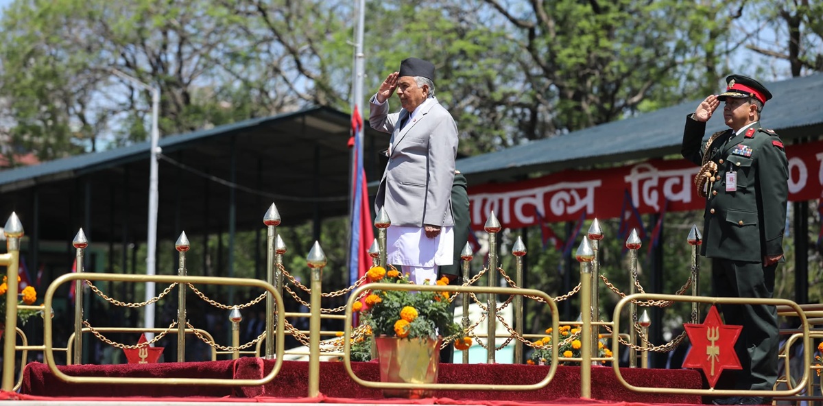 On the occasion, the Nepal Army presented a guard of honor to the President. The event included the national anthem, flag hoisting, and a tribute to the martyrs who sacrificed their lives for democracy.
