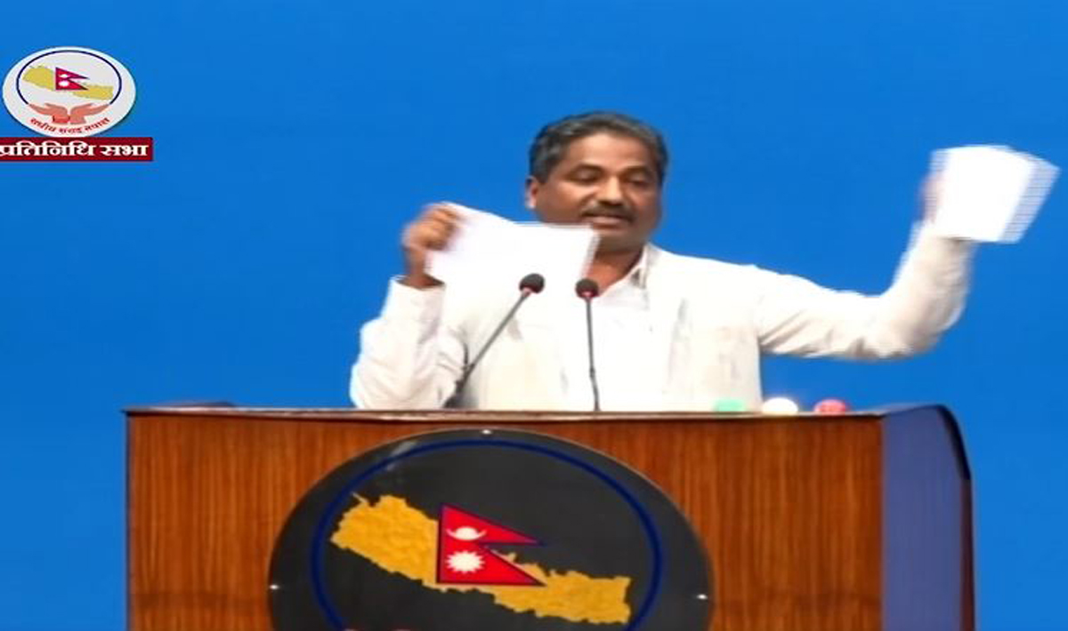 KATHMANDU: Aam Janata Party Chairman Prabhu Sah tore up the Federal Civil Service Bill during Sunday’s meeting of the House of Representatives, calling it discriminatory and threatening mass unrest if it is passed.