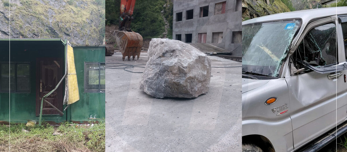 In addition to structural damage, the landslide also affected several vehicles and equipment stationed at the site, including a tractor, a Scorpio SUV, and an excavator.