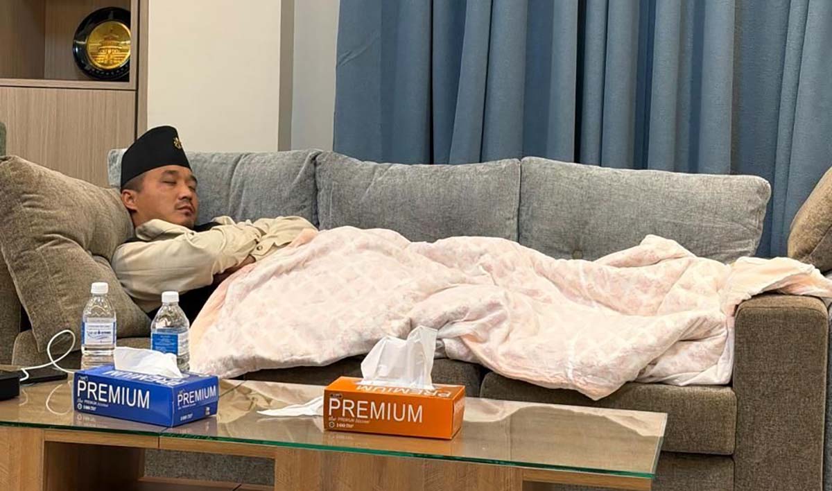 KATHMANDU: A photo of Home Minister Sudan Gurung resting at his office has surfaced on social media, drawing public attention.