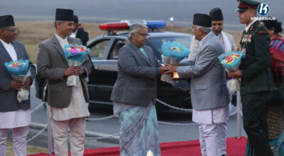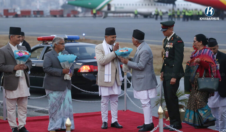 He was welcomed at Tribhuvan International Airport by Vice President Ram Sahay Prasad Yadav, Prime Minister Sushila Karki, ministers, heads of security agencies, and senior government officials.