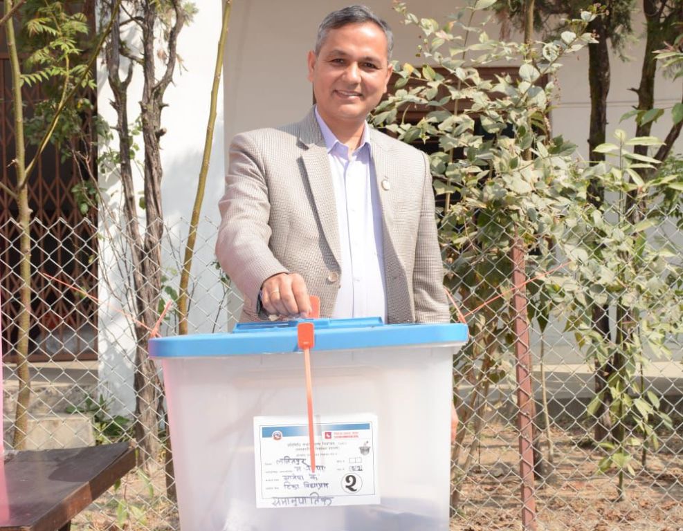 He voted at the Tika Vidhyashram Secondary School polling station in Sanepa, Lalitpur Metropolitan City.