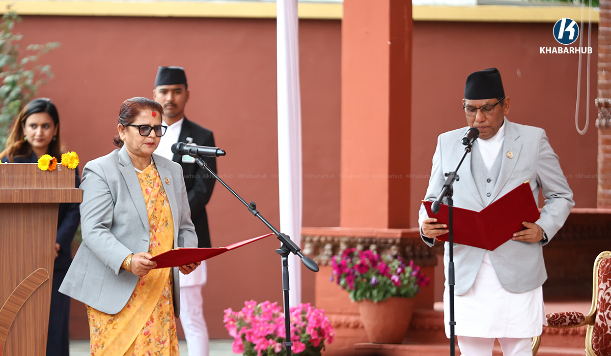 The oath-taking ceremony was conducted before National Assembly Chair Narayan Prasad Dahal in the presence of President Ram Chandra Paudel at the Sheetal Niwas.