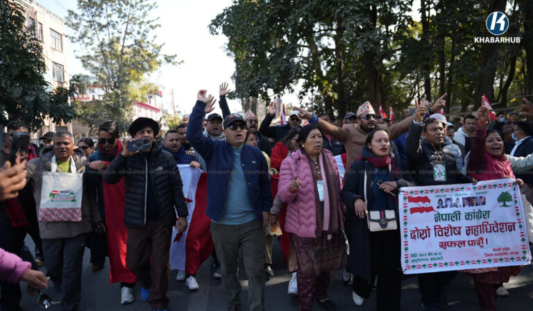 KATHMANDU: A vibrant rally of Nepali Congress (NC) leaders and activists has reached Bhrikutimandap today, ahead of the party’s special general convention, accompanied by drums and music.