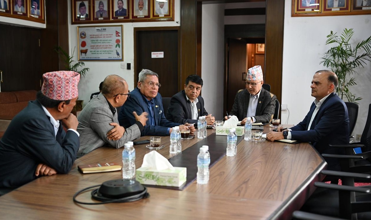 The meeting was attended by Chandra Prasad Dhakal, president of the Federation of Nepalese Chambers of Commerce and Industry; Kamlesh Kumar Agrawal, president of the Nepal Chambers of Commerce; Birendra Raj Pandey, president of the Confederation of Nepalese Industries; and Khem Raj Bhandari, president of the Nepal Industry Commerce Federation, among others.