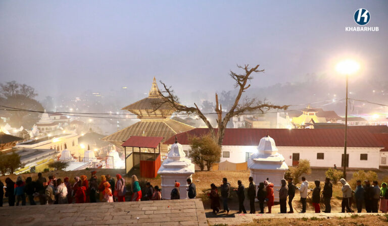 Today, a large number of sadhus and devotees have gathered at Pashupatinath Temple. Sadhu Babas can be seen seated in the temple premises with incense sticks, while devotees have been patiently waiting in line since morning for a glimpse of Lord Pashupatinath.
