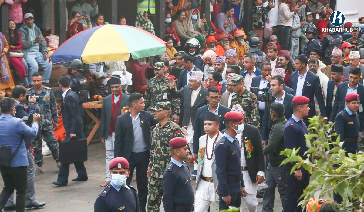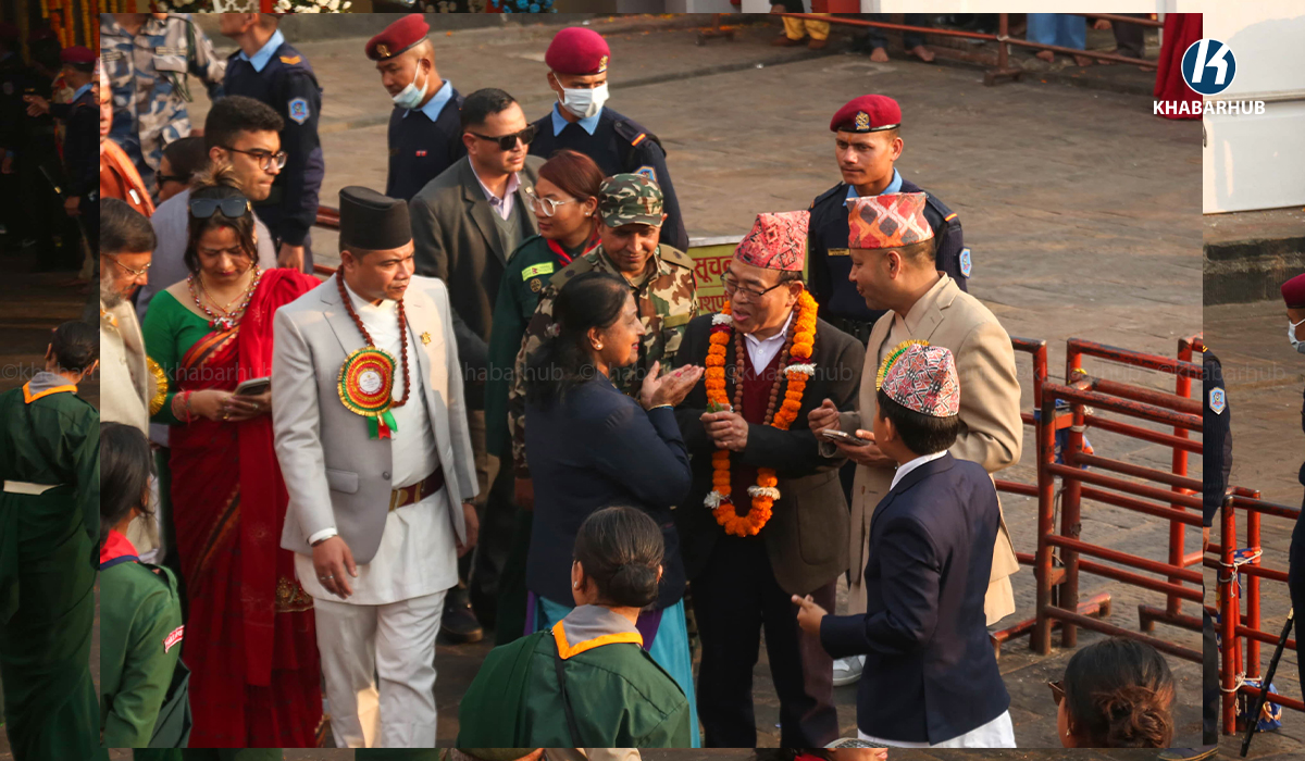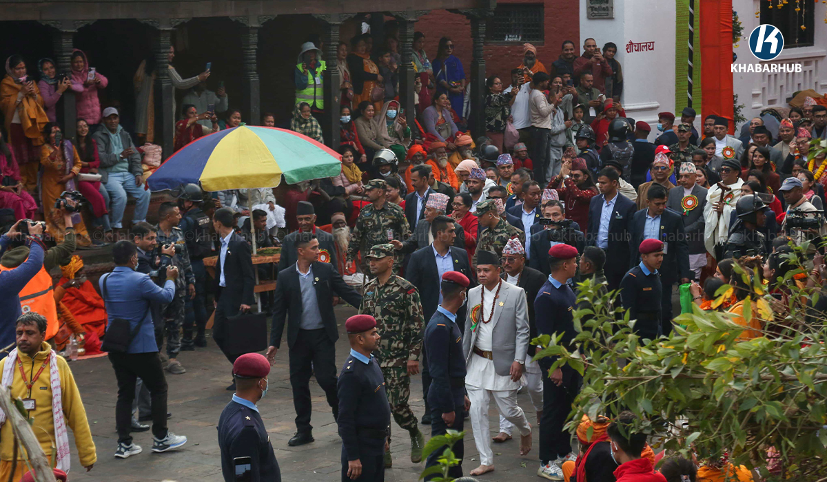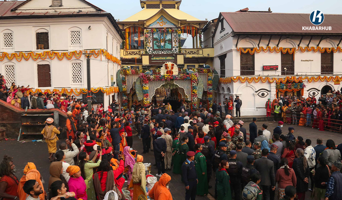 On the occasion of Maha Shivaratri 2082, President Paudel, accompanied by First Lady Sabita Paudel, visited the temple on Sunday afternoon for darshan and special worship. He was received with sandalwood paste and flower prasad by the chief priest of the temple.