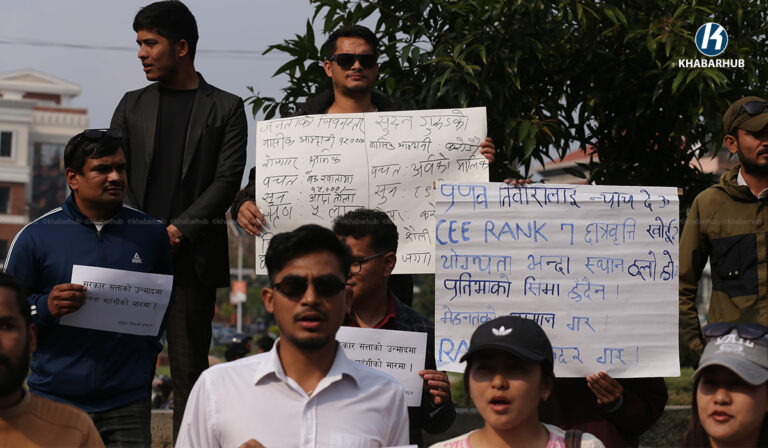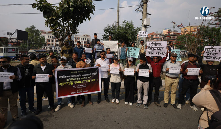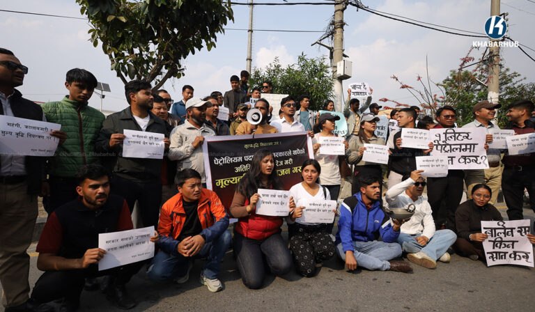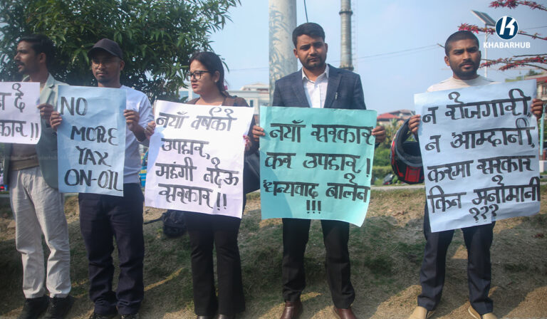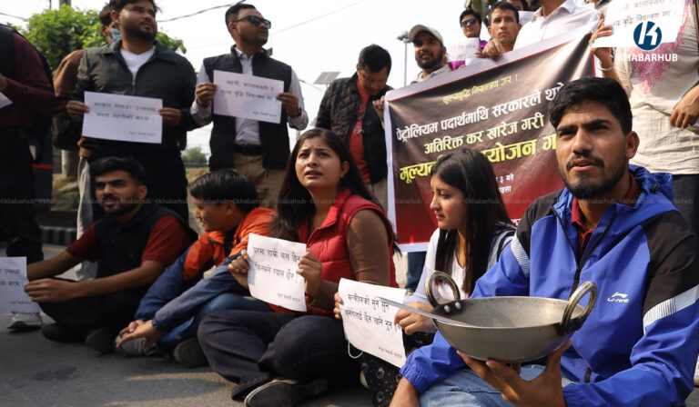 KATHMANDU: Students affiliated with various student unions staged a protest at Maitighar Mandala on Thursday, demanding the government scrap taxes imposed on petroleum products and adjust fuel prices.