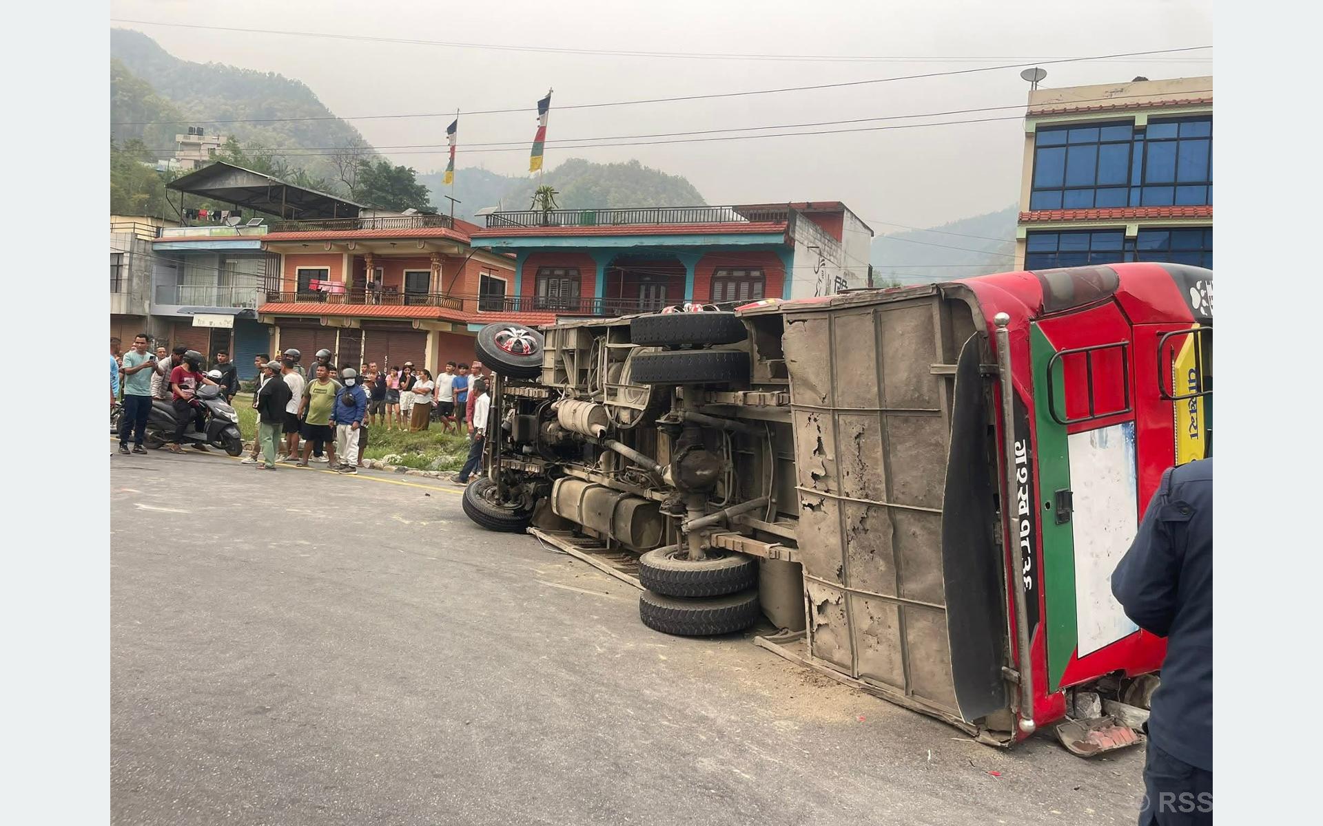 According to Deputy Superintendent of Police Shrawan Kumar BK of the District Police Office, Tanahun, the passenger bus (Ga 2 Kha 1836), en route from Pokhara to Bhairahawa, overturned on the roadside, causing the accident.