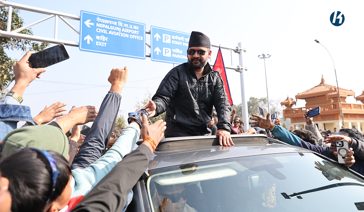 Shah visited Nepalgunj on Monday to engage in electoral outreach. He was warmly received at the Nepalgunj Airport by supporters and local leaders. A significant crowd had gathered to welcome him.
