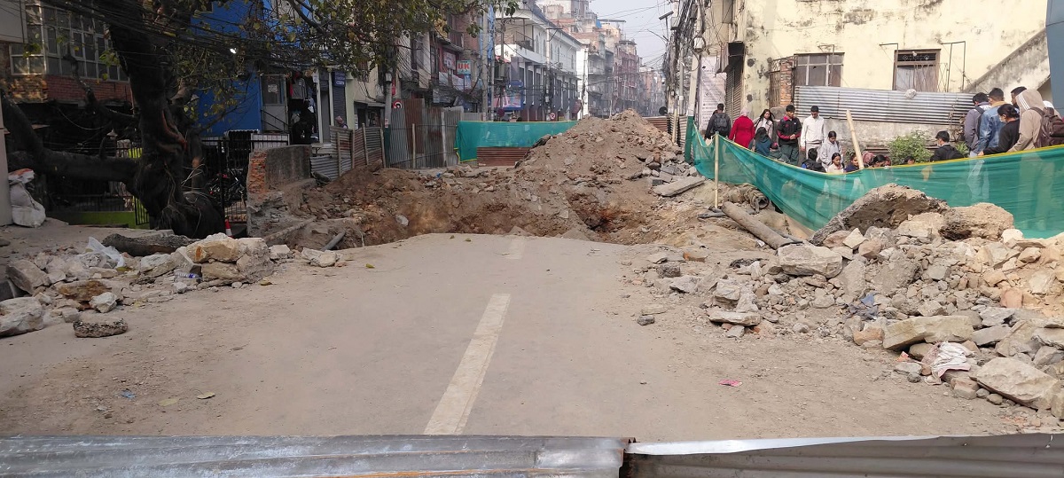 Following the road excavation, the Bagbazar–Putalisadak stretch has been left in disarray. The demolition of the roadway in one of the capital’s busiest corridors has severely affected traffic flow.