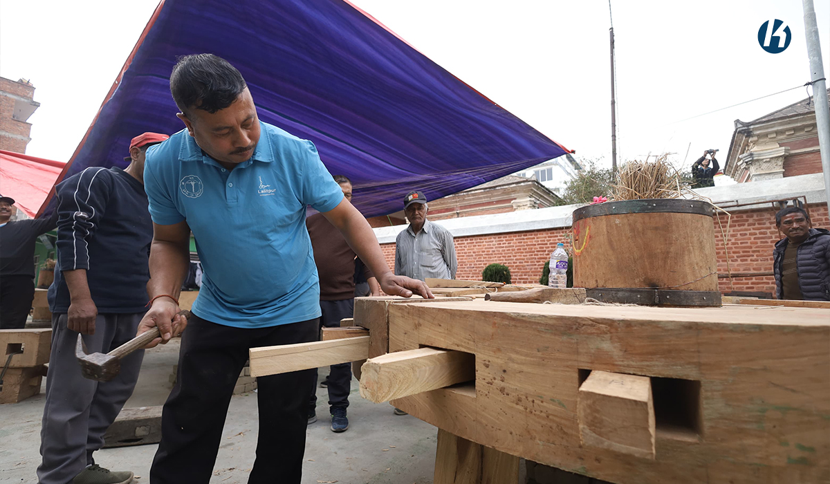 According to representatives of the local guthi, the reconstruction work began on the day of Saraswati Puja. Skilled artisans have been engaged in the process, following traditional techniques and methods.