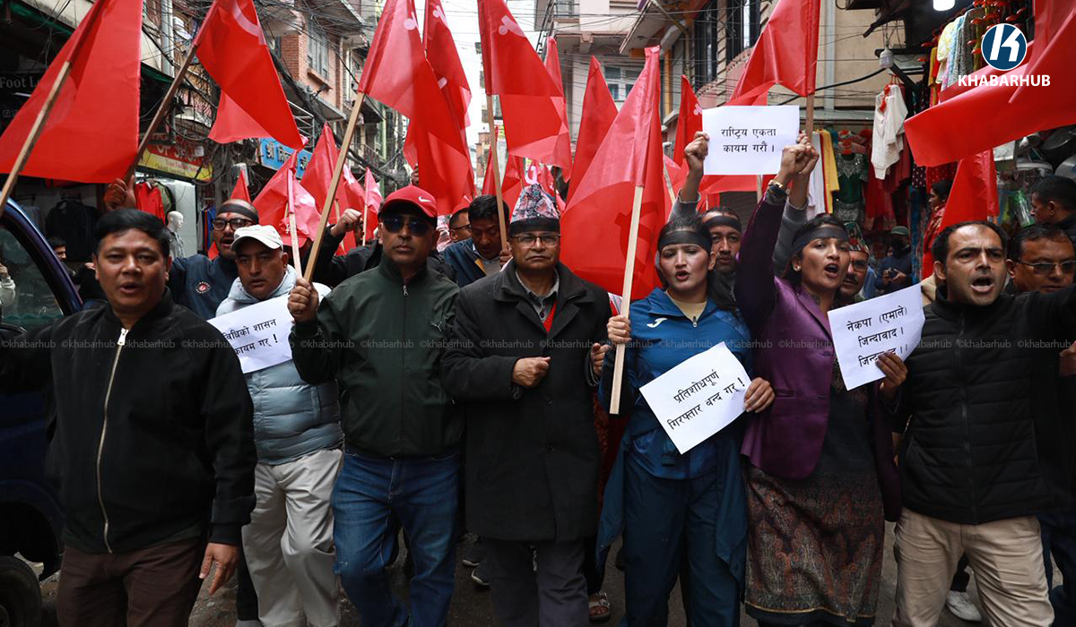 Supporters started demonstrating from Chabahil Chowk while an emergency meeting of the party’s secretariat was underway at the UML central office in Chyasal.
